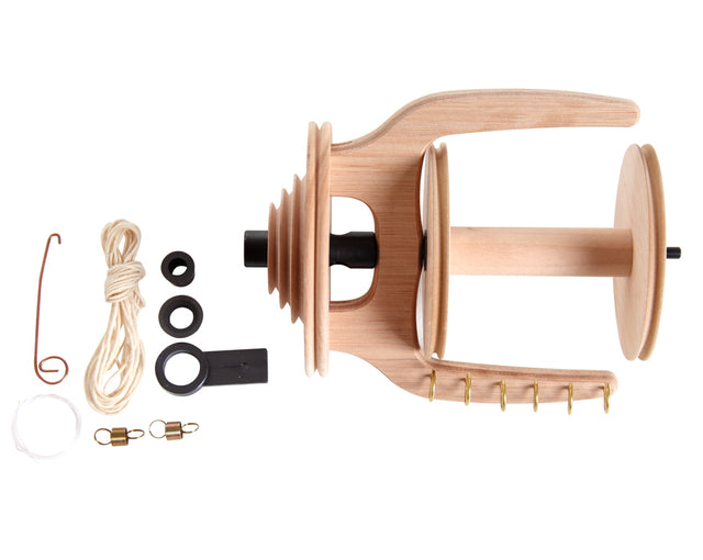 The large bobbin and orifice allow spinning chunky and novelty yarns or production spinning and plying. Very quick and easy to fit. Just swap the maid upright bearing.