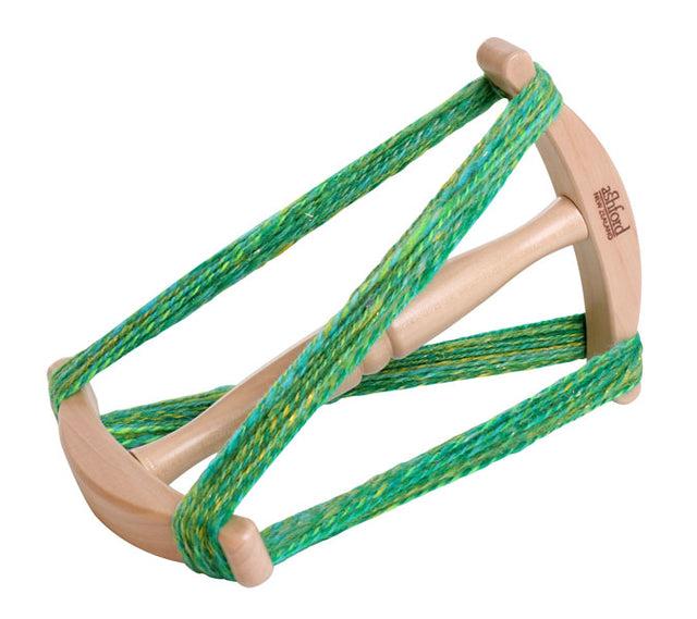 The niddy noddy is a very useful accessory for winding yarn from the spinning wheel bobbin or spindle. Specially shaped crossbars allow the skein (hank) of yarn to slide off easily when made. Perfect for your samples.
